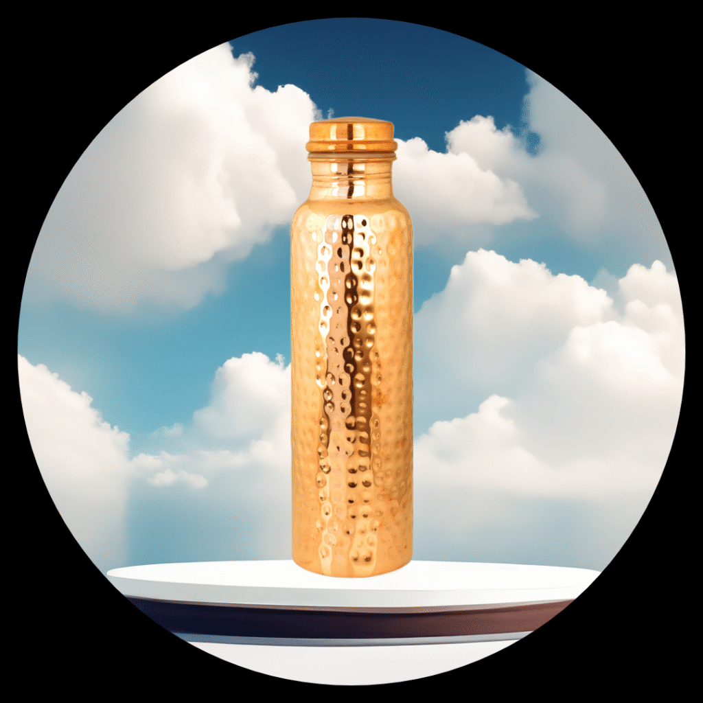 Pure Copper Hammered & Engraved Water Bottle – 1000ml | Set of 2