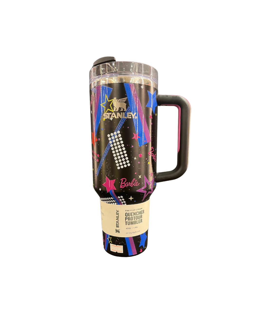 Make hydration fun and fabulous with the Stanley x Barbie™ FlowState™ Quencher H2.0 Tumbler – Retro Star Edition. Featuring a bold black background with neon pink, blue, yellow, and star-themed graphics, this collector’s edition tumbler is both functional and fashionable. With its large 40 oz capacity and innovative FlowState™ lid, it’s perfect for sipping on the go or at home.