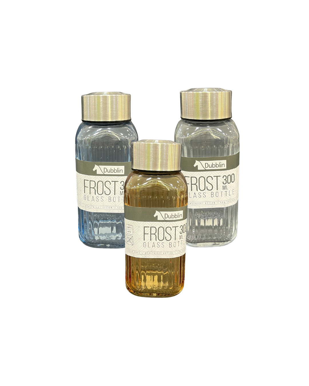 Dublin Frost 300 ml Glass Water Bottles – Set of 3 (Assorted Colors)