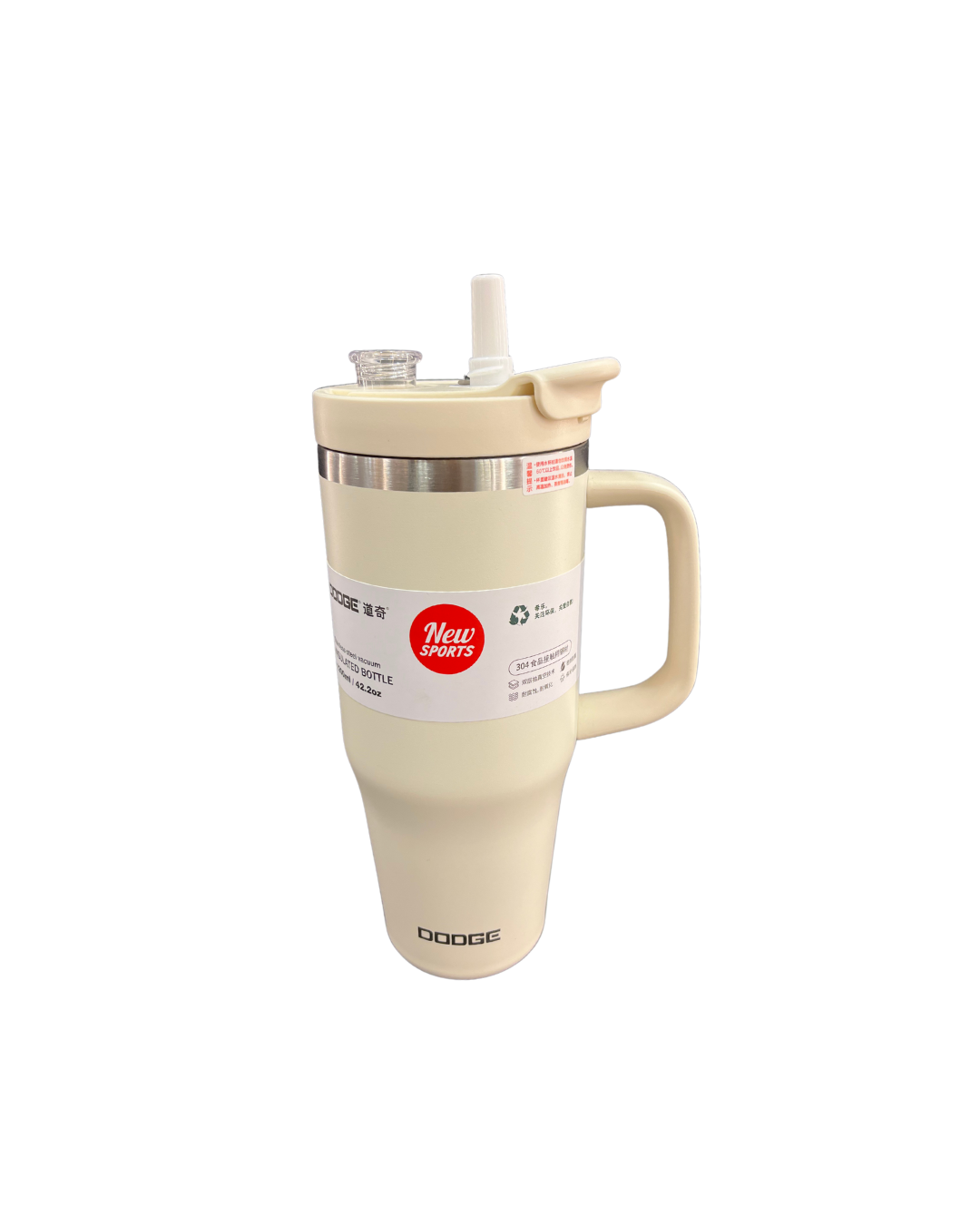 New Sports 42oz Stainless Steel Insulated Tumbler with Handle & Straw Lid – Cream Beige